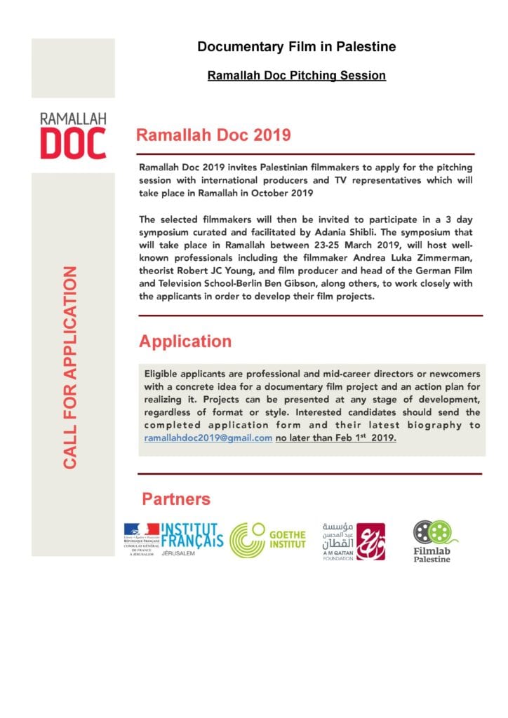 Pour pouvoir participer, vous devez être professionnel, semi-professionnels, ou amateurs avec une idée concrète de film documentaire ainsi qu’un plan d’action pour sa réalisation. Les projets peuvent être présentés à n’importe quel stade de leur développement, peu importe leur format ou leur style. Les candidats intéressés devront envoyer leur formulaire de candidature dument complété et une biographie récente à l’adresse ramallahdoc2019@gmail.com avant le 1er février 2019.