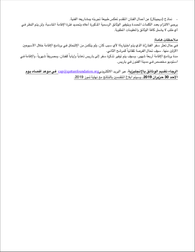Toute candidature se fait par mail à l’adresse cap@qattanfoundation.org avant le 30 juin 2019.
