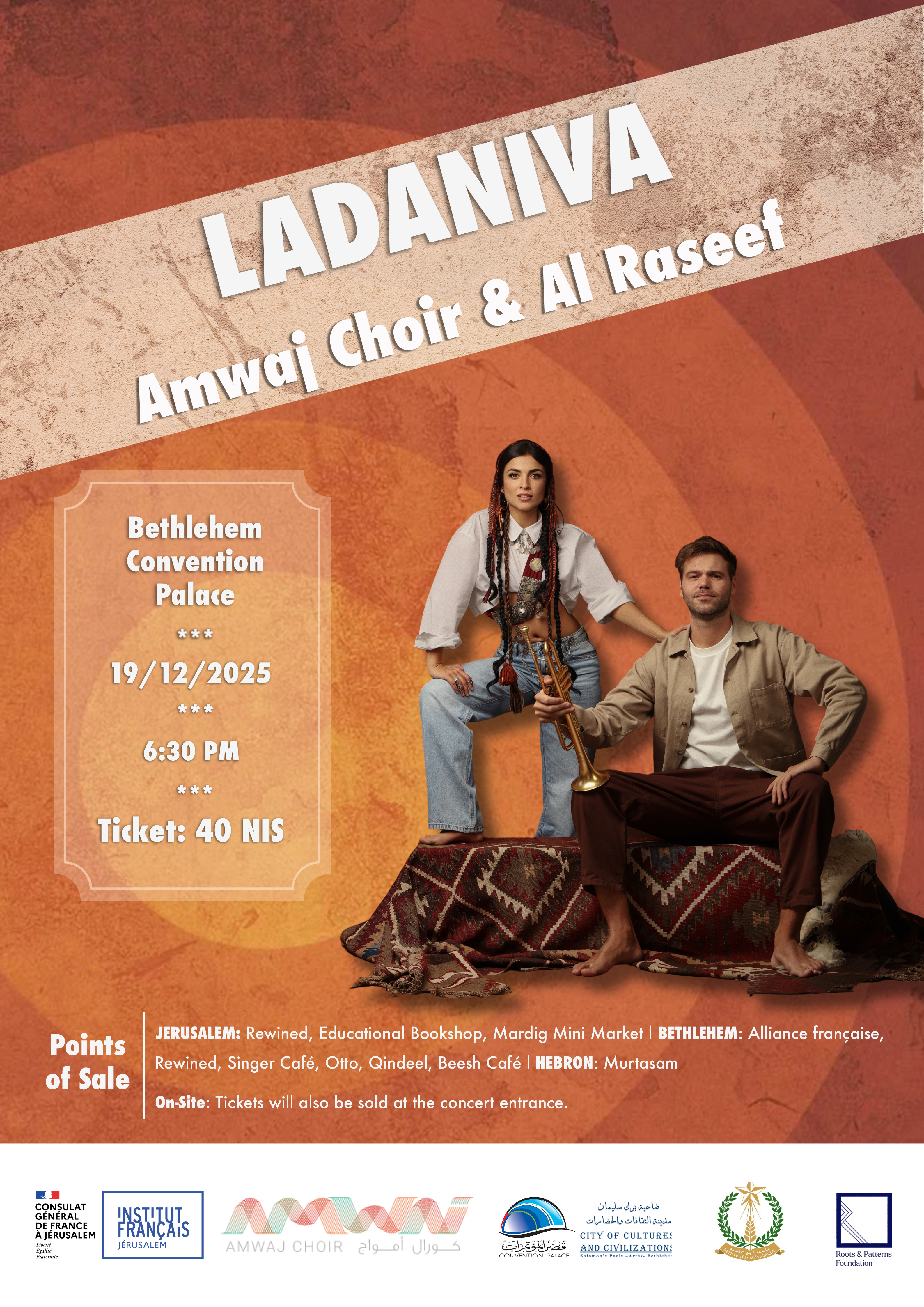 Le groupe franco-arménien Ladaniva se produira en concert avec la participation du chœur Amwaj et du groupe Al Raseef au Convention Palace de Bethléem le jeudi 19 décembre 2025 à 18h30.