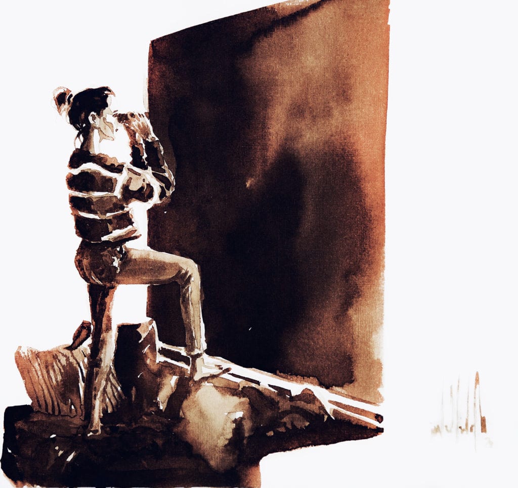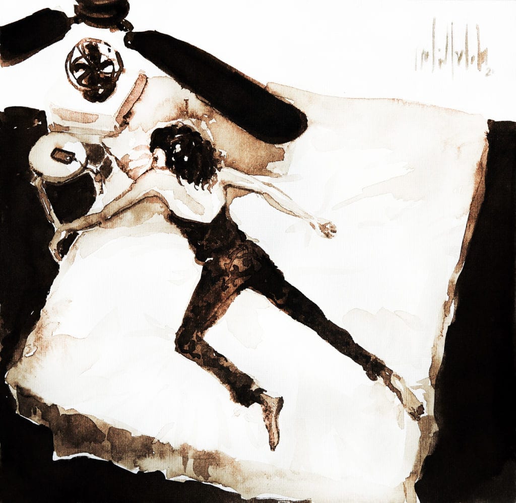 Le dessin à l’encre incarnent l’état d’une quarantaine imposée par l’émergence du Coronavirus et son impact sur les gens, comme une pièce où le temps s’est figé pour arrêter l’accélération de la vie d’un humain, et lui donne la possibilité de méditer sur lui-même et sa réalité et lui révèle les secrets de son subconscient, de ses affiliations et pensées, qui constituent son monde et sa pratique quotidienne et lui donne l’opportunité d’imaginer son futur comme une partie du futur de l’humanité et la restauration de sa relation avec la nature, en tenant en compte les cas individuels de chaque personne.