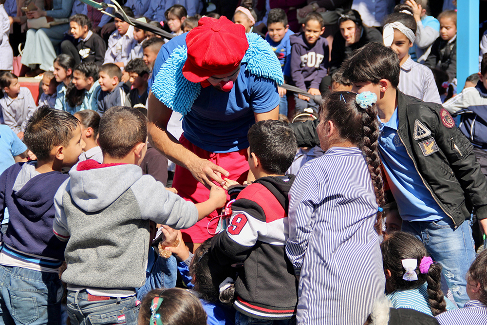 في هذا السياق، ينخرط المهرجون بلا حدود بشكل منتظم في المنطقة منذ عام 1998. وتقدم الجمعية مشاريع فنية مختلفة في مخيمات اللاجئين الومدارس، مما يسمح، من خلال تطوير الأنشطة الثقافية والفنية، بالمساعدة في إدارة ضبط النفس وبناء قدرات المرونة من أصغر.