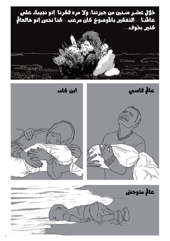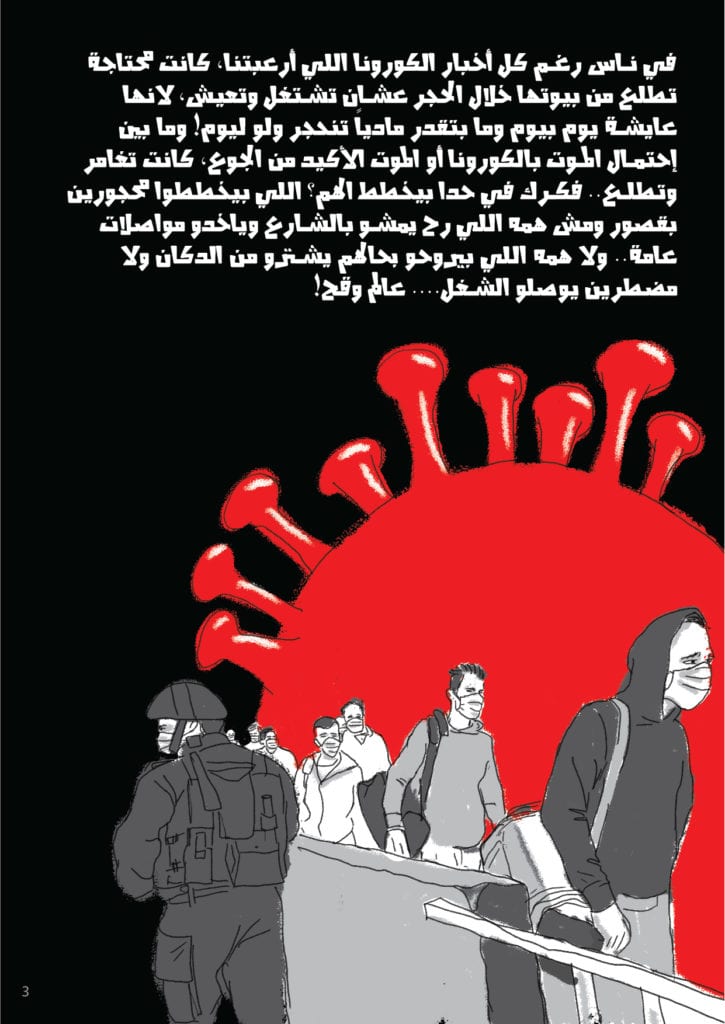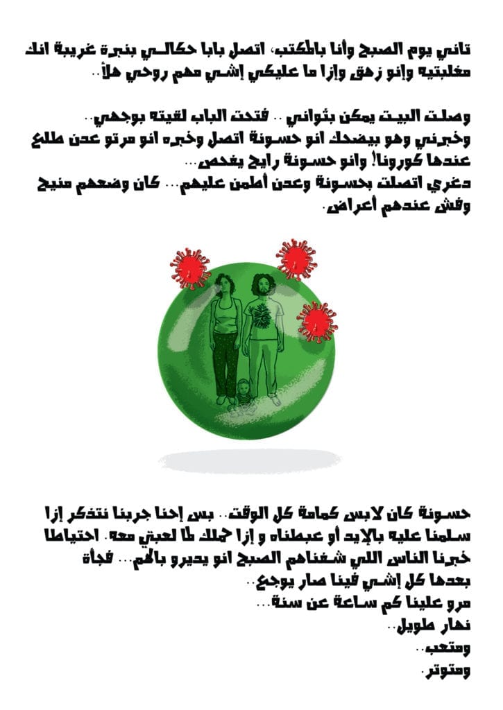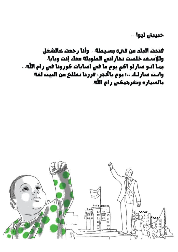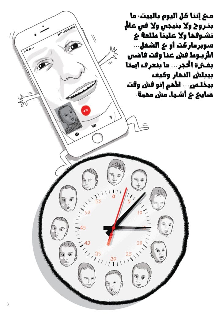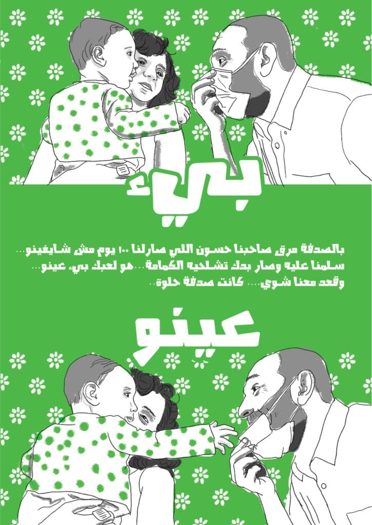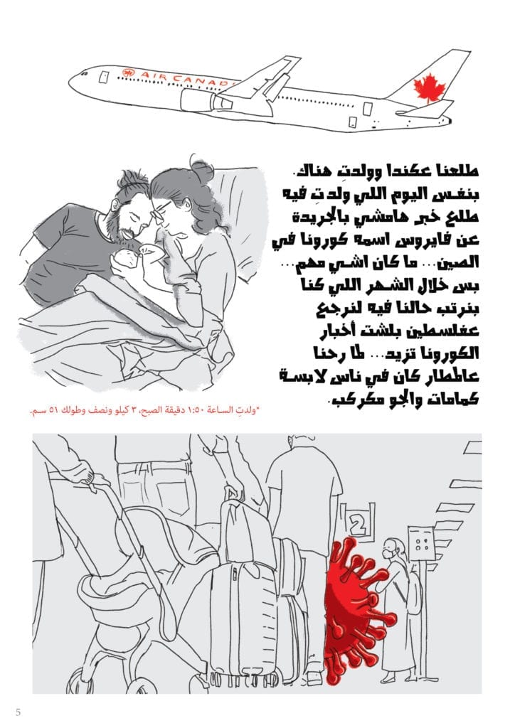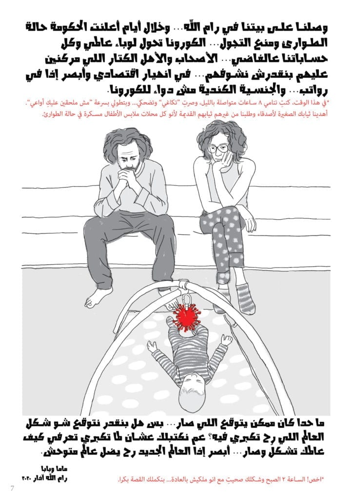 Yara and Amer have waited for ten years before deciding to have kids in this world. However, in December, their little girl was born, around the same time, the first case of Coronavirus was discovered in Wuhan. From the day of her birth, Yara and Amer began to keep a diary of the situation, on a personal and global level, in an attempt to imagine the world in which she will grow up. Segments of their diary will be presented in comics series under the title « A New World. A Diary of New Parents in the Pandemic Time ».